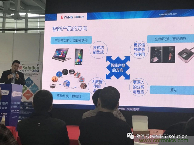 宇阳科技是中国百强企业,产品以贴片电容为主,郑总表示,“智能产品的方向是产品多功能及功能??榛?,AI就是大数据的采集、收集、分析和运算,这里面加入了更多的信号收录与使用,生物识别、智能感应等。”