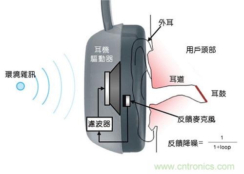 反馈降噪耳机(图5)的工作原理主要是检测耳鼓区域的噪声,然后形成一个基本的反馈回路,以便最大限度地降低该区域的噪声级。