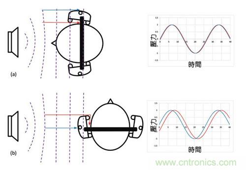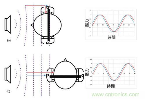 图4:靠近噪声进入耳朵的位置放置话筒(a) 0度朝向的噪声(b) 90度朝向的噪声