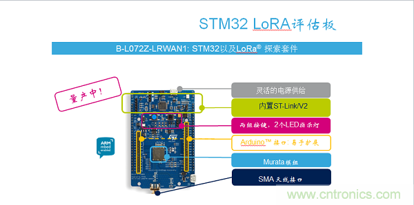 I-NUCEO-LRWAN1是支持STM32 Nucleo或Arduino开发板的扩展板,虽未通过LoRa1认证,但只要插到主板上,即可立即着手开发全功能的LoRa/FSK/OOK(频移键控/二进制开关键控)连接应用。