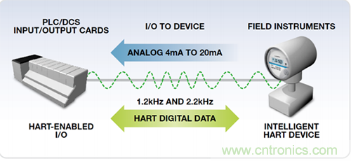 HART 标准的引入提供了一种创建“智能”发射器的方式,方法是添加数字通信功能,共享用于传统 4 mA 至 20 mA 仪器的同一根双绞线。4 mA 至 20 mA 模拟电路由 1 mA 峰峰值 FSK 信号进行调制—而不中断原始主变量传输—同时仍然为环路工作留下裕量。HART 协议已经成为在智能设备和控制或监控系统之间通过模拟线路发送和接收数字信号的全球标准。