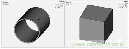 网格划分对有限元的求解及其重要,单元越小,网格越细,则离散域的近似度越好,计算结果也越精确,但计算量及误差都将增大。本文建立的线圈模型是一个规则的柱体,采用体扫掠方式划分网格。空气模型经过浇筑之后形状变得复杂,采用自由方式划分网格。图2为线圈和空气的有限元模型,最后通过numcmp命令将其浇筑在一起。