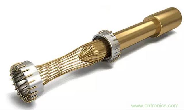 弹簧探针是众所周知常用于测试设备,但同样的属性,也非常匹配一次性医疗设备。例如,制造成极小的直径就可以开发极高密度的连接器,在应用单个触点和适宜的尺寸上是非??尚械摹5商秸爰际趸乖市斫细叩乃秤π杂氤ざ缺?,这使得制造商可以设计密度到2mm的连接器,同时保持0.5mm的顺应性。这些连接器一般尺寸较小,也适合于拔插次数多以及振动大的环境。