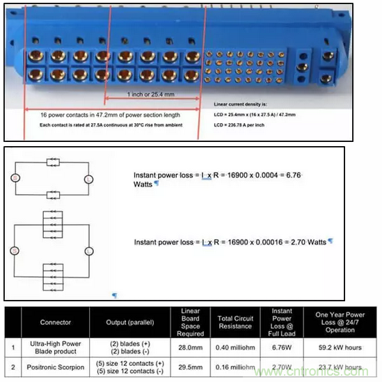 与安费诺的PwrBladeULTRA®连接器系统相比,Positronic的Scorpion SP系列连接器是一种机械接触式电源连接器,单位效率从1,560W提高0.26%。在连续一年,每周7天,每天24小时运行的情况下,Scorpion连接器可节省35.5度电,相当于节省了3美元以上。因此,从运营的第三年开始,仅节省能源成本就会超过Scorpion连接器的全部成本。