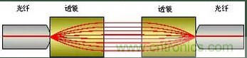 非接触式光纤连接器(以扩束光纤连接器为例)的工作原理如下图所示,光纤出射的光经透镜扩展光斑后,以近似平行的高斯光束出射,然后进入另一个透镜并耦合进光纤中,实现光斑面积成百上千倍的增加以及非接触的连接,可极大地提高光纤连接器在脏污、振动等恶劣环境下连接的可靠性。