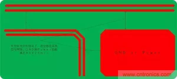 6.为了减少串扰,在空间允许的情况下,其他信号网络及地离差分线的间距至少20mil(20mil是经验值),覆地与差分线的距离过近将对差分线的阻抗产生影响;