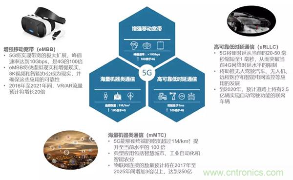 未来5G将应用在增强移动宽带(eMBB)、高可靠低时延通信(uRLLC)、海量机器类通信(mMTC)三大场景。而这需求的是非常宽的带宽,非常高传输的速率,非??煽康牡脱邮钡牧?,另外,还需要海量机器类型连接的网络。