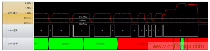 当总线支线过长,上升沿和下降沿产生台阶现象,当台阶正好处于0.5V逻辑识别阈值附近时,容易导致位宽度失调,从而使接收节点接收错误,针对此类错误给出如下解决方案: