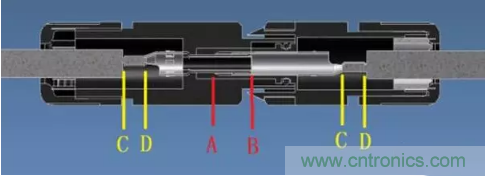 对所有的样品进行初步外观分析后发现,连接器烧毁的部位主要存在于连接器的中间部分(即A-B段,记为Rco)及两端压接部分(即C-D段,记为Rcr)(见图4)。