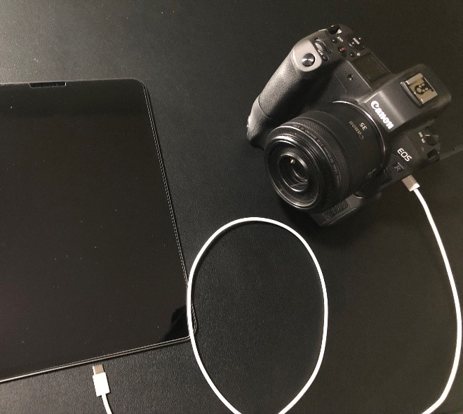 图1.数码相机通过USB-C电缆连接到平板电脑