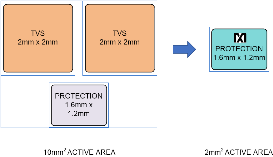 图4将这种高度集成的扩展?;そ饩龇桨窹CB布局与提供纯正电涌?;ぜ敖系蚈V和ESD?;さ牡湫途赫方辛吮冉稀:笳咝枰钔獾牡缏防绰鉋SD/浪涌/OV规范要求,增加了BOM成本,并且PCB占用空间增加了5倍。
