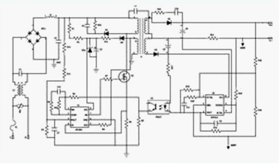 IEC国际电工委员会对照明灯具提出明确的谐波要求,即IEC61000-3-2标准。因此对于较大功率LED照明应用,采用功率因数校正(PFC)控制技术成为必需。对于60W以下应用,有高性价比单级PFC控制方案,该方案电路原理图如图6所示。