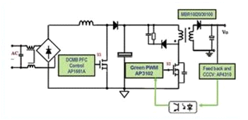 在更大功率应用条件下,单级PFC电路难以同时兼顾PFC预调整和反激电路输出恒流调整性能,这时需要采用两级电路架构实现这一目标。因此,有新推出的PFC+PWM 两级架构电路拓扑方案,该方案电路原理图如图9所示。