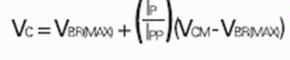 假设二极管的电压是VBR(MAX)(最坏情形中的导电开端)和VCM(对应于最大电流IPPM的箝位电压)之间电流的线性函数,并且VBR(MAX)位置的电流相对于IPPM可忽略不计,则中等电流时箝位电压的保守估算值为