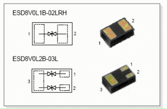 图1:ESD8V0L1B-02LRH和ESD8V0L2B-03L