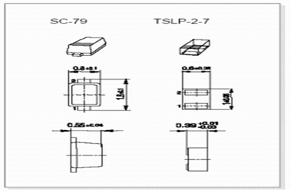 这些ESD?;て骷捎玫腡SLP封装的外形极其小巧。与SC79相比,TSLP-2-7封装尺寸小,高度低(最大只有0.4mm,其已成为市场的基准)。特别是对于快速发展的移动电话和消费/IT市场(ESD8V0L系列专门针对该市场开发)而言,对高度降低的需求极其重要。因此,使用TSLP封装可以节省空间并提高设计灵活性。