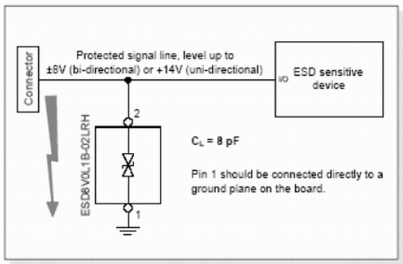 - 采用英飞凌ESD8V0L1B-02LRH二极管配置