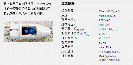 两个专用压敏电阻以及一个充气式气体放电管确保了该插头的全面防护功能,这些元件均来自爱普科斯。