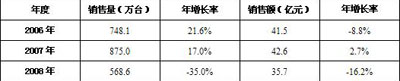 表1 2006-2008年中国MP3/MP4播放机机市场销售情况
