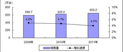 赛迪顾问预计,2009年中国MP3/MP4播放机市场销售量将达到596.7万台,同比增长4.9%,到2011年MP3/MP4播放机市场销售量将达到650.2万台,2009-2011年中国MP3/MP4播放机市场销量年均复合增长率达到4.6%。