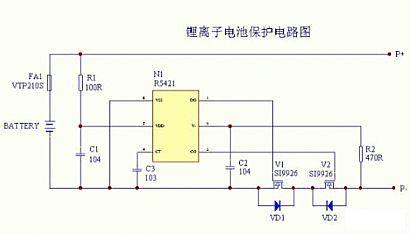 下图为一个典型的锂离子电池保护电路原理图。