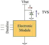例如,为满足ISO7637-2标准,特别是图1中的1、2、3a和3b的脉冲要求,只使用一个瞬变电压抑制器(TVS)即可有效?;こ翟啬?椤?br />