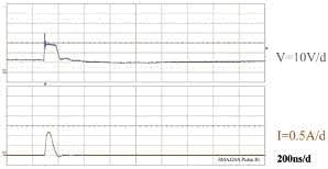 图10在ISO7637-2脉冲3b测试过程中通过TVS上的电压和电流