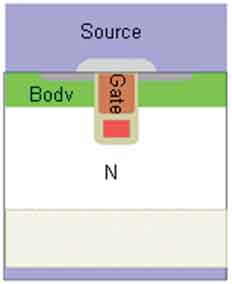 由于二极管具有负温度系数,并联工作不太容易,在一个晶圆上分成两个区做MOSFET和肖特基二极管,那么肖特基二极管在与MOSFET交界的区域,温度高,离MOSFET较远的区域,温度低。当肖特基二极管温度高时,流过更大的电流,所以与MOSFET交界的肖特基二极管区域由于温度高,流过的电流更大,温度进一步上升,就可能产生局部的损坏。目前,通常将特基二极管的单元做到MOSFET的单元里面,这样就可能得到更好的热平衡,提高器件的可靠性。