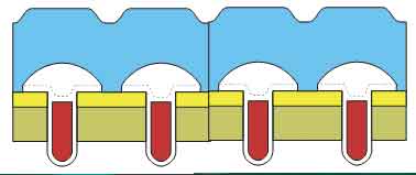 图4中,每个MOSFET单元,在相同额定的Vds电压条件下,导通电阻相同,其具有更高的单元密度,在水平和垂直两个方向都尽可能缩小了尺寸。AOS的AON 6702采用DFN的封装,其Vds为30V,Vgs在10V条件下Rds(on)为1.9mΩ,同时内部集成的具有优异特性的肖特基二极管。