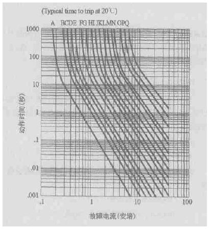图1 RXE系列元件20℃时的动作保护特性曲线