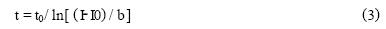 式中t0,I0,b均为常数。由图1曲线部分曲线取若干特殊点,经计算机进行数学处理,得到t0,I0,b的具体数值: