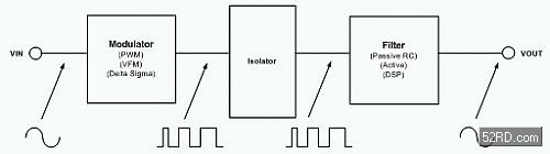 音频与视频系统也需要高速和延迟时间最小的隔离资料传输以确保原始音频或视频内容能够忠实再生。音频系统通常使用48ksps模拟数字转换器,视频系统则需要资料速率更高的转换器–它们多半是速率1Msps到10Msps的资料转换器。我们需要140Mbps隔离元件才能将序列编码的14位元、10Msps资料串流传送通过隔离层,这只有现代数字隔离元件才能做到。