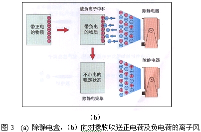 除静电器是一种通过向对象物吹送正电荷及负电荷的离子风来中和对象物带电状态的装置,如图3(b)所示。