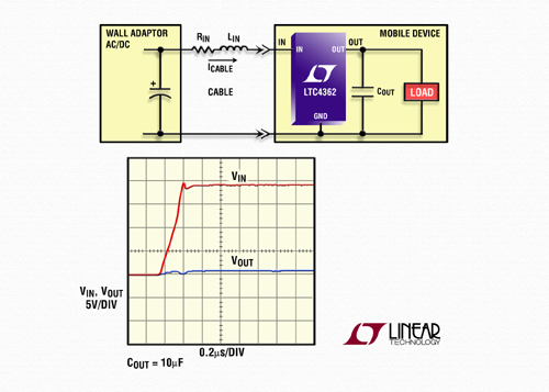 凌力尔特公司 (Linear Technology Corporation) 推出 2.5V 至 5.5V 过压和过流?;て?LTC4362,该器件为?;さ脱?、便携式电子产品免受电压瞬态和电流浪涌的损害而设计。电源适配器失效或故障,或者将一个 AC 适配器带电插入设备的电源输入时,可能会发生过压。无意间将错误的电源适配器插入设备可能会因过压或负电源电压而引起损坏。LTC4362 运用准确度为 2% 的 5.8V 过压门限检测过压事件,并在 1us (最大值) 时间内快速响应,以隔离下游组件和输入。高达 28V 的过压?;び梢桓瞿诓垦┍蓝疃ǖ牡?RDS(ON) MOSFET 实现,而且在大多数应用中无需瞬态电压抑制器 (TVS) 或其它外部组件,就可承受电感电缆瞬态。此外,LTC4362 监视一个内部电流检测电阻器两端的压降,以提供准确度为 20% 的 1.5A 过流门限。LTC4362 目标是具有多个电源选项的便携式电子产品,如通过交流和汽车电池适配器以及USB端口充电的蜂窝电话、MP3/MP4 播放器、数码相机等。
