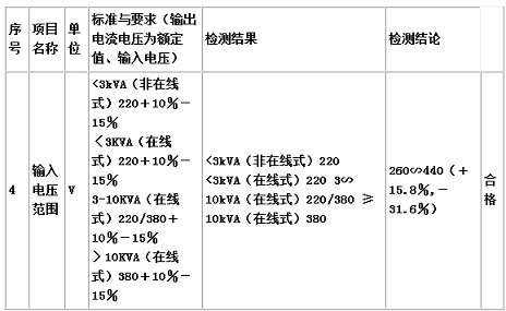 (2)宽输入电压范围。输入电压允许范围为+15%~-30%,在中大功率UPS当中还未见到另一品牌UPS经过权威单位检测达到此指标,如附表所示。
