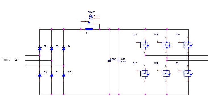 大家可以看出图上标出15KW的地方,就是我们的继电器应用的地方,一般在15KW以下的变频器上的?;すぷ鞫际怯杉痰缙骼赐瓿傻?,大于15KW的变频器都是用接触器来?;さ?,继电器主要完成的作用为,大家知道当电机启动会有一个很大的冲击电流,为了对变频器进行?;ぃ扔眉痰缙靼颜飧龃蟮某寤鞯缌鞯沧。簿褪羌痰缙鞔τ诔?刺鹊缌骰指吹秸?,继电器关闭,把那个电阻短路,所以此处的继电器一般都是需要电流比较大的,例如omron的G8P型继电器,由于此处继电器对电机有比较重要的作用,所以一般客户都会选择质量较好的继电器,有用OEG的,有泰科的,也有松川的。如果在15KW以上的变频器,一般客户不会选择用继电器来?;ぃ捎诔寤鞯缌魈?,一般客户会选择接触器来?;ぃ墙哟テ鞯募鄹褚燃痰缙鞴蟮亩?。还有一个地方,就是变频器上都会有给客户留的无源触点,这个地方会用继电器当开关使用。