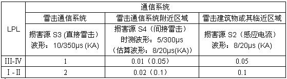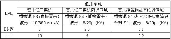 在LPZ0B(LPZ1或更高的防护区)之内的各种线路浪涌主要来自LEMP感应产生的,就应选用In(8/20μS)测试的SPD或用组合波(1.2/50μS, 8/20μS)测试的SPD。