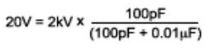 对于一个给定的去耦电容,ESD测试中初始电压的变化遵循电荷守恒原理。例如,使用一个0.01μF去耦电容,2kV HBM测试电压可以达到20V: