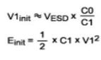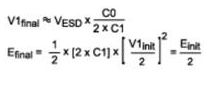 4. 能够在瞬间导致IC损坏的能量相当于微焦级,有外部电源去耦电容时,考虑这一点非常重要,从电源电容(C1)传递到IC的能量是: