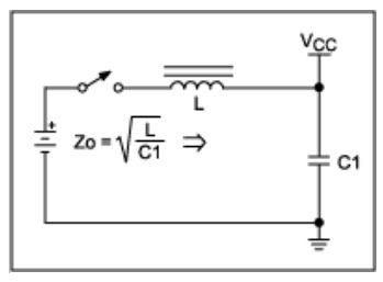 上述特征阻抗的计算可以从低阻L-C电路的能量(E)推导出来: