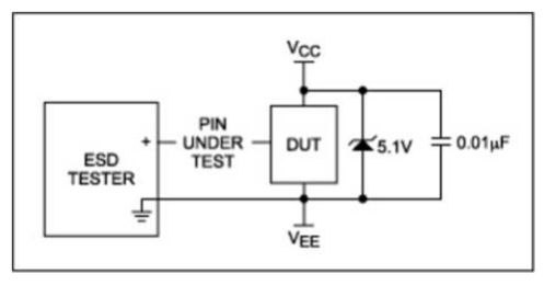 * 确定应用场合的测试电压(VESD),典型值为2kV的HBM或100V MM模式;
