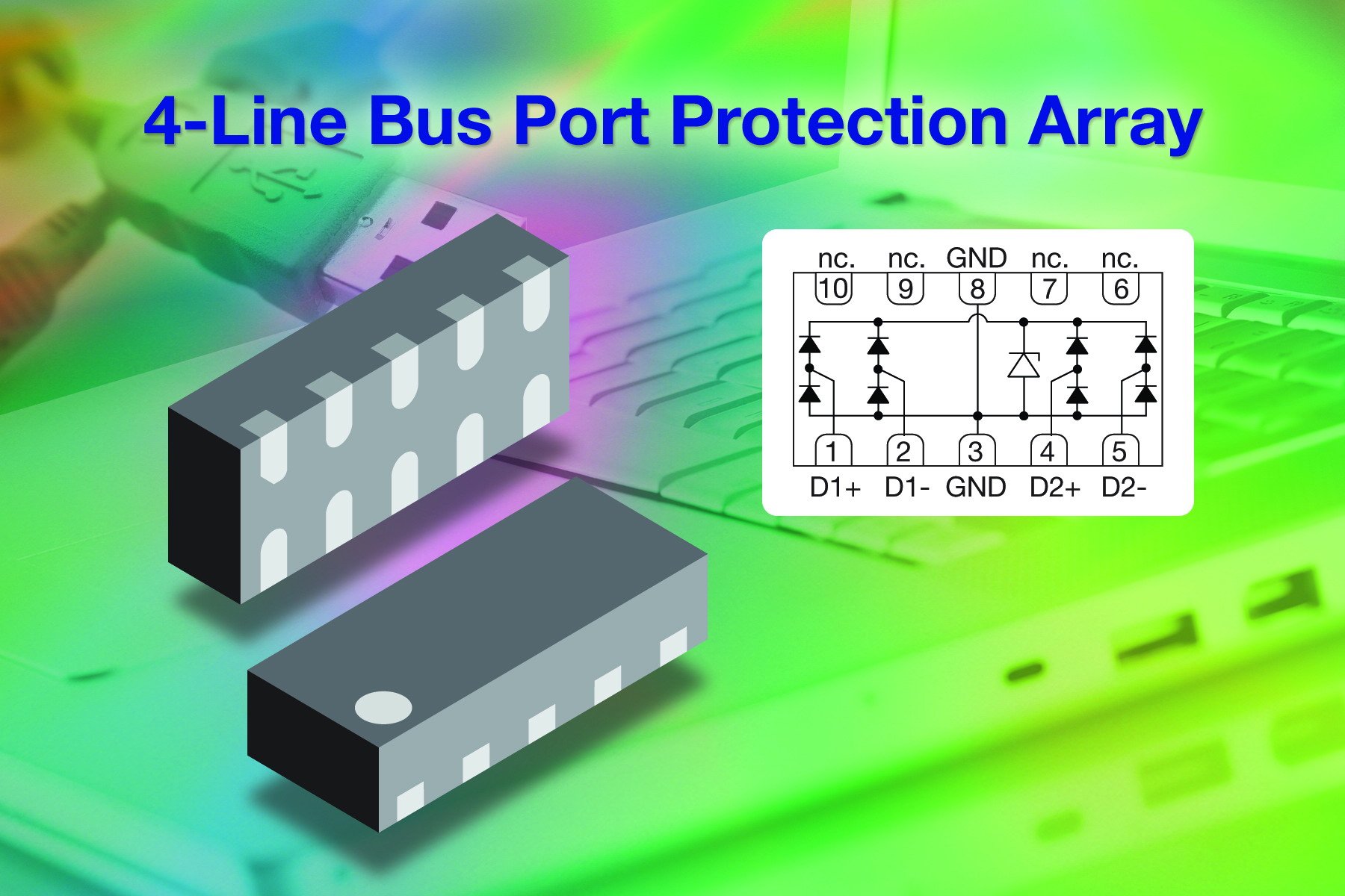 日前,Vishay Intertechnology, Inc.宣布,推出采用新型超小尺寸LLP2510封装的新款4线ESD保护阵列---VBUS54ED-FBL。VBUS54ED-FBL的占位面积只有2.5mmx1.0mm,高度低至0.55mm,其低电容和低泄漏电流的特性可以?;じ咚傩藕畔呙馐芩蔡缪剐藕诺乃鸷?。
