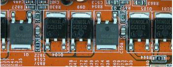 一般主板烧坏,维修人员最先检查的都是Mosfet。质量不好的Mosfet在长时间使用的时候,会非常烫手,甚至有烧毁的可能。所以,选购主板,观察Mosfet这个环节上,最好考虑Philips,Infineon,IR的品牌,其次考虑Alpha,ST,ON这些品牌。如下图所示: