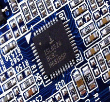 好的主板,电源的合理分配是必不可少的。电源管理芯片一般在CPU插槽附近,可以直接能够观察到,主流厂商为Intersil和Maxim。如下图所示: