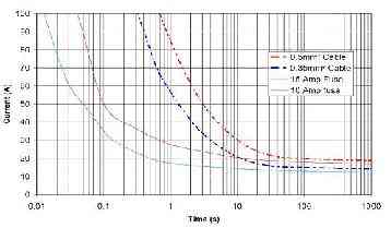 熔断器的工作原则是一个简单的I2R与时间的关系。电流越大,熔断或开路时间越短。熔断器的功耗与通过熔断器的电流的平方成正比。当功耗过高时,熔断器熔断。这个特性同样适用于受熔断器?;さ南呤?。当熔断器的“熔断”特性与所保护的线束相似,只是处理电流能力略低时,熔断器是一个理想的选择。