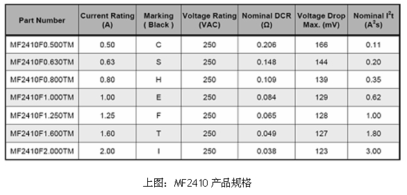 * MF2410 贴片保险丝规格介绍
