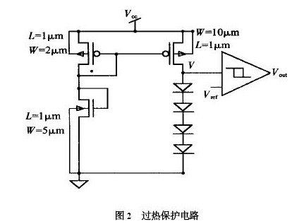 介绍了一种利用串连二极管构成的过热?;さ缏返牡缏方峁?工作原理,及参数调节的要点,也简要提及了版图的绘制。该过热保护电路结构简单、原理清晰、性能可靠,适用于功率集成电路。