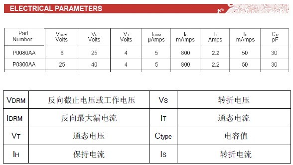 • VS:转折电压必须小于设备能承受的最大瞬态峰值电压