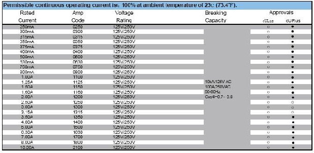 512系列: 额定电压:交流250V, 延时,500 mA 到15A