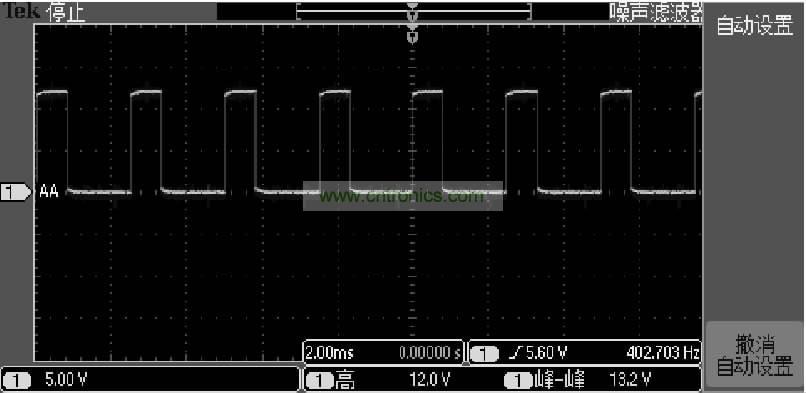 在实际应用中栅极的驱动波形如图4所示,此波形是在电机3000RPM时的驱动波形,可以看出此波形完全能够满足要求,同时进行了短路、电机堵转等试验,图3电路也能过很好地?;すβ蔒OSFET管。
